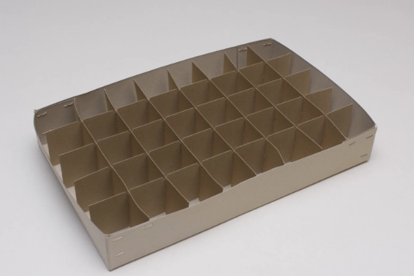 Kompakte Kartonqualität für kundenspezifische Einwegverpackungen mit präzisen Passformen und hoher Oberflächenqualität für technische Bauteile.